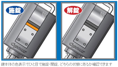 鍵をちゃんとかけると、オレンジ色の表示が鍵のつまみの部分に表示されます。