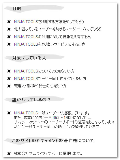 - NINJA TOOLSを利用する方法を知ってもらう